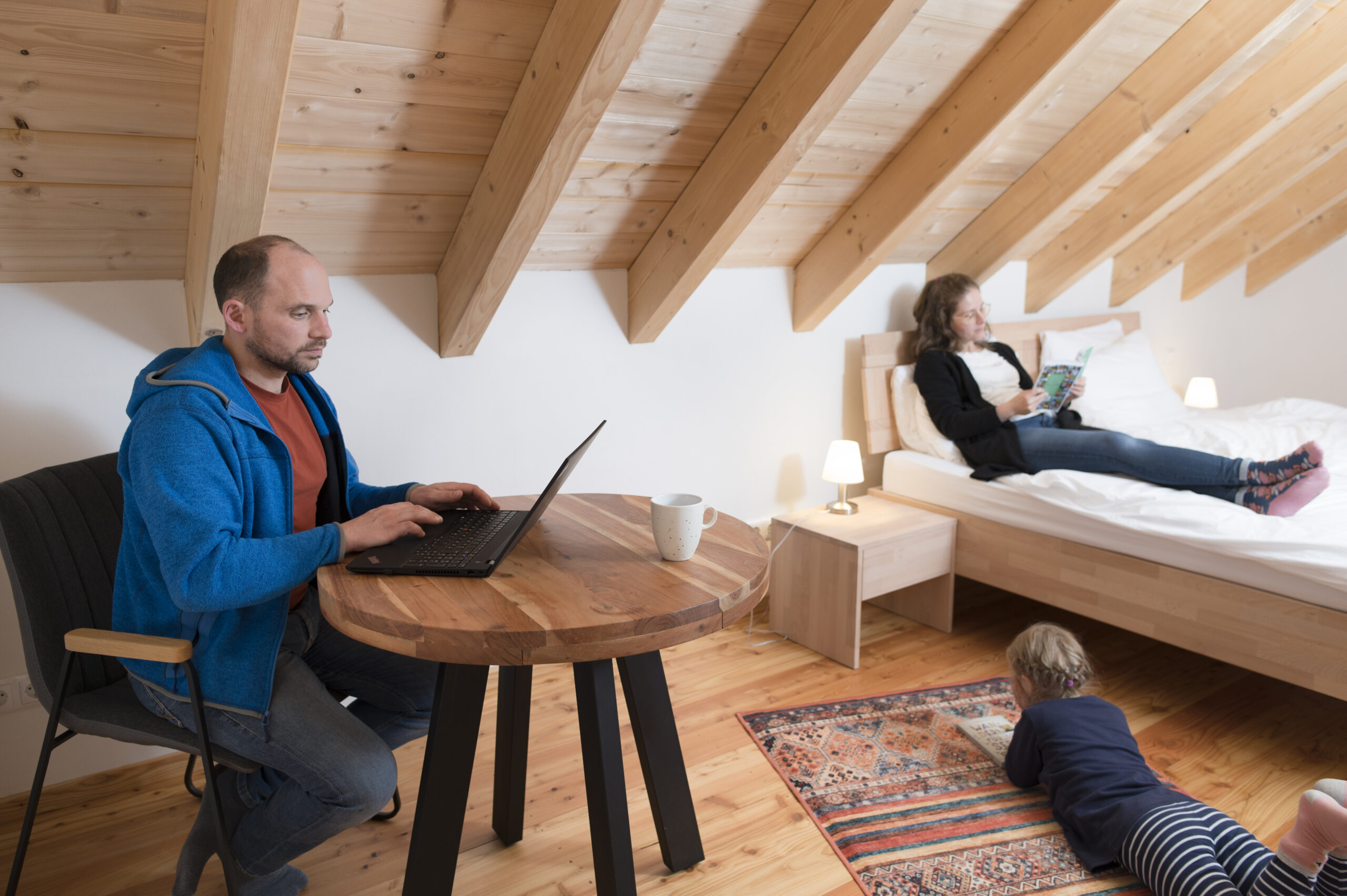 - Zusätzliches Schlafsofa im Dachgeschoss (1,40 × 2,00 m)